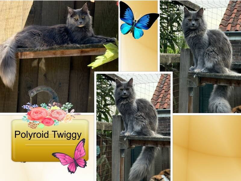 Twiggy is een enorm lief makkelijk poesje, knuffelt graag, maar ze is ook super nieuwsgierig, Twiggy is dan ook overal bij, op en in . Als er wat nieuws is, komt zij het inspecteren.